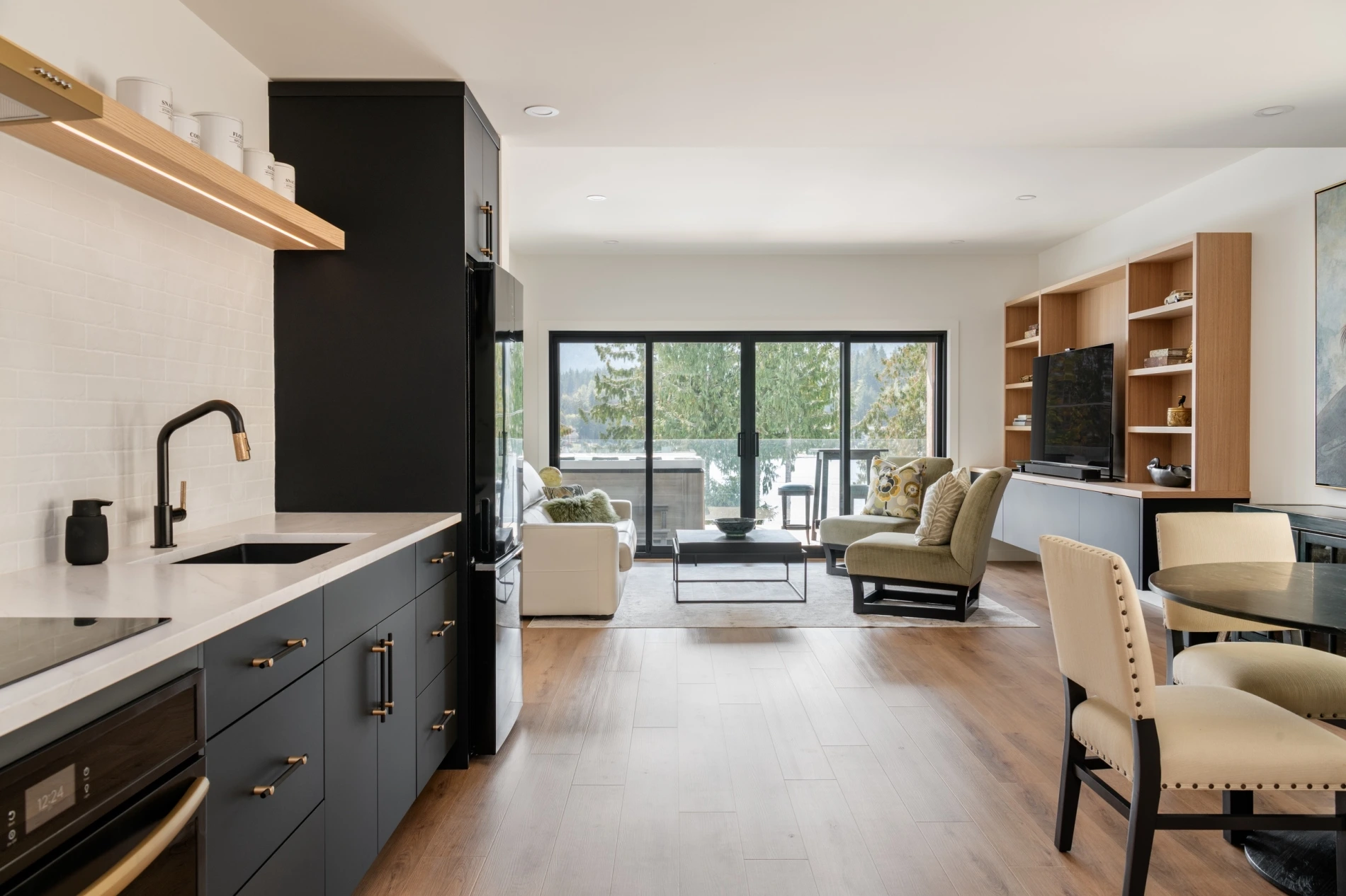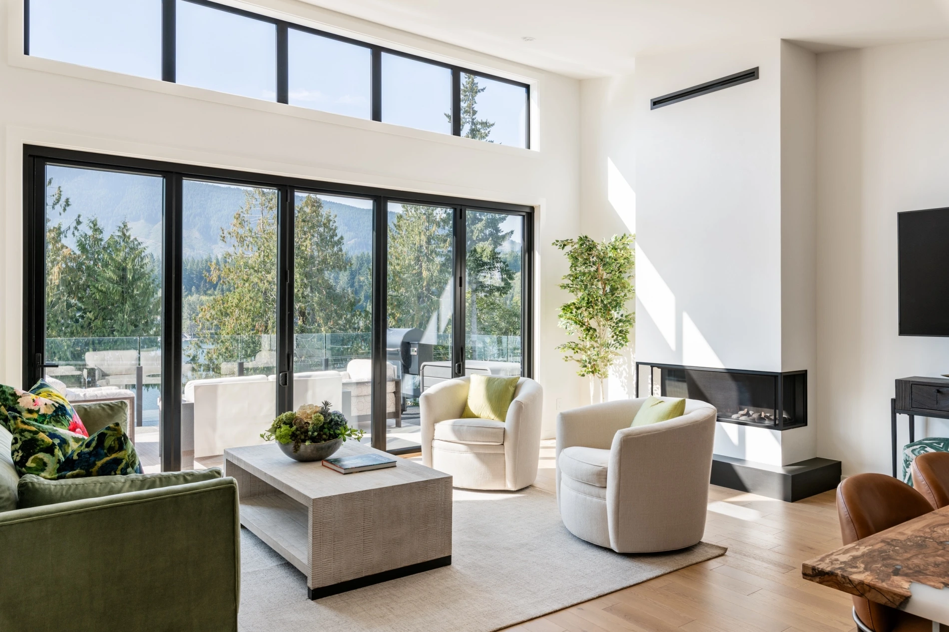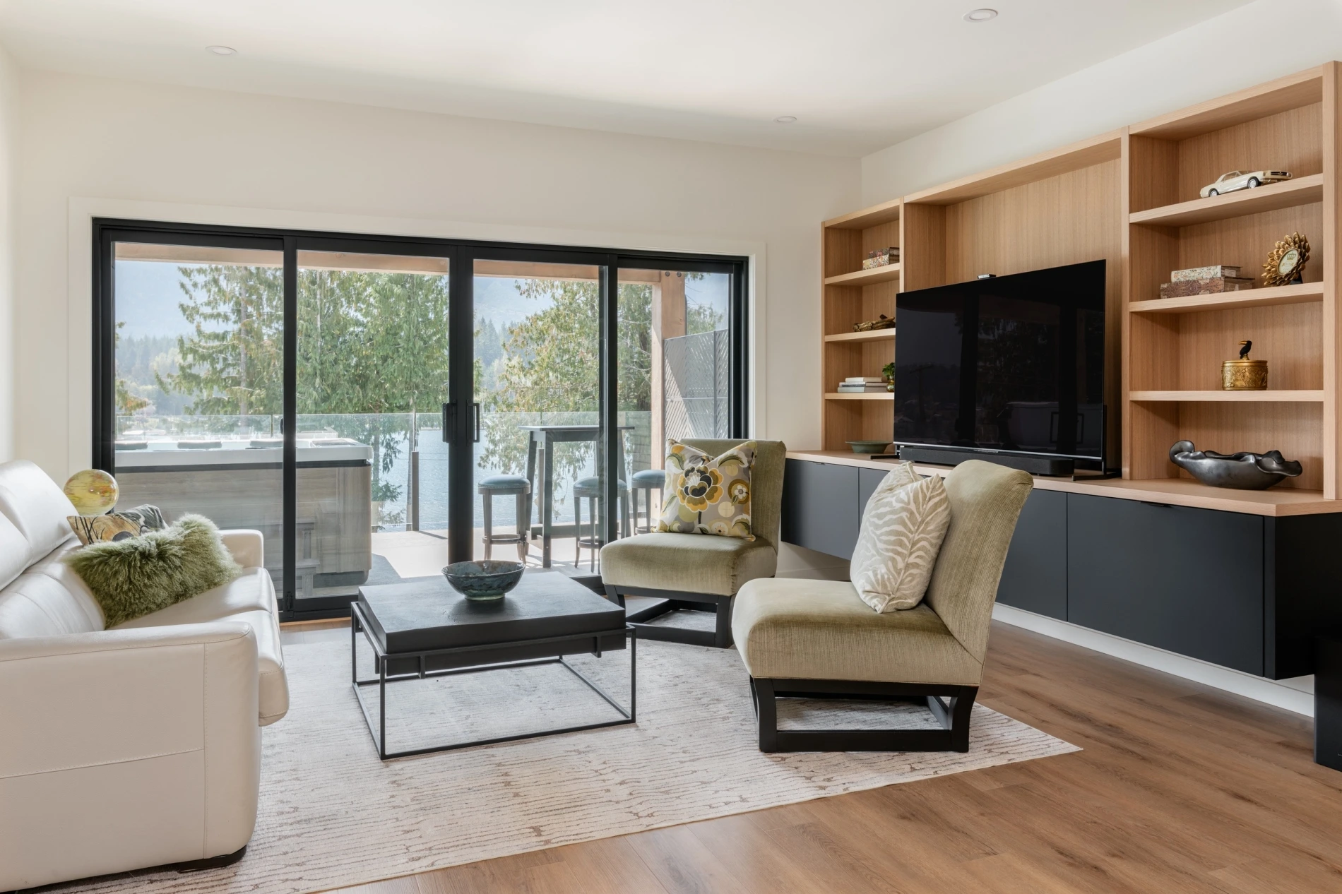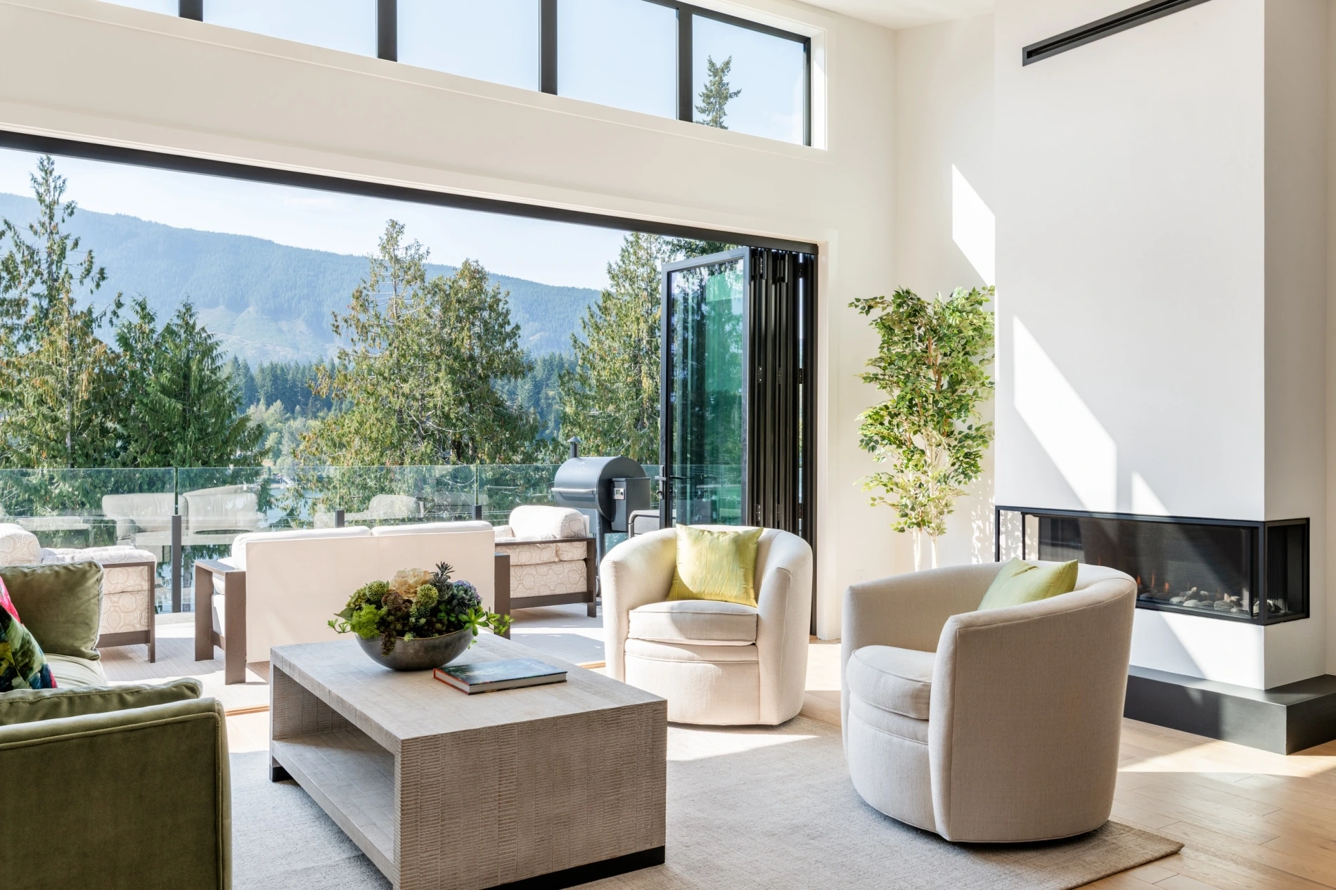 - Large folding glass door connecting the living room to the outdoors.