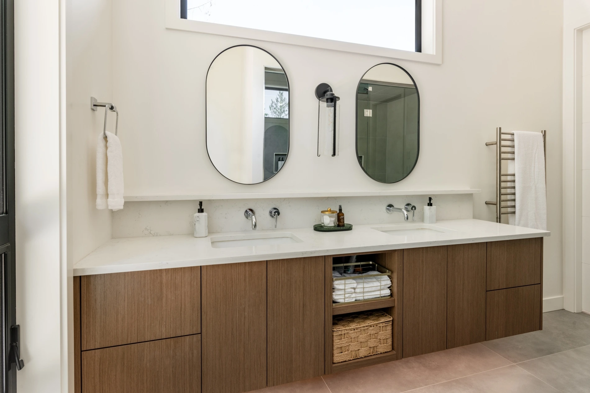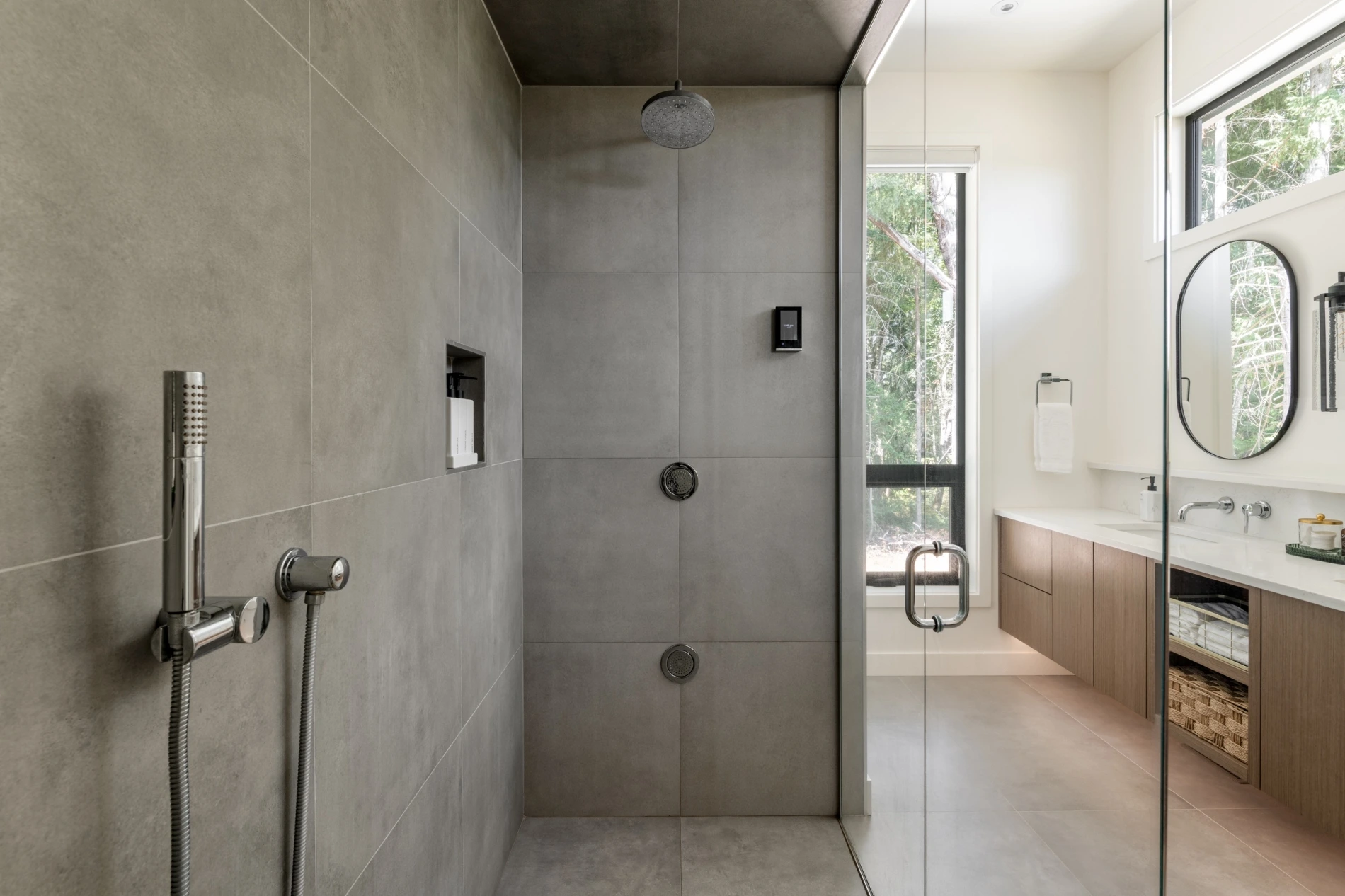 This project delivered a high-performance envelope using Aerobarrier sealing, significantly improving air-tightness. An HRV system provides balanced fresh air, while major stormwater-control work resolved the challenges of the site and protected the long-term integrity of the property. This executive home reflects our focus on thoughtful design, meticulous craftsmanship, and building spaces that elevate everyday living.