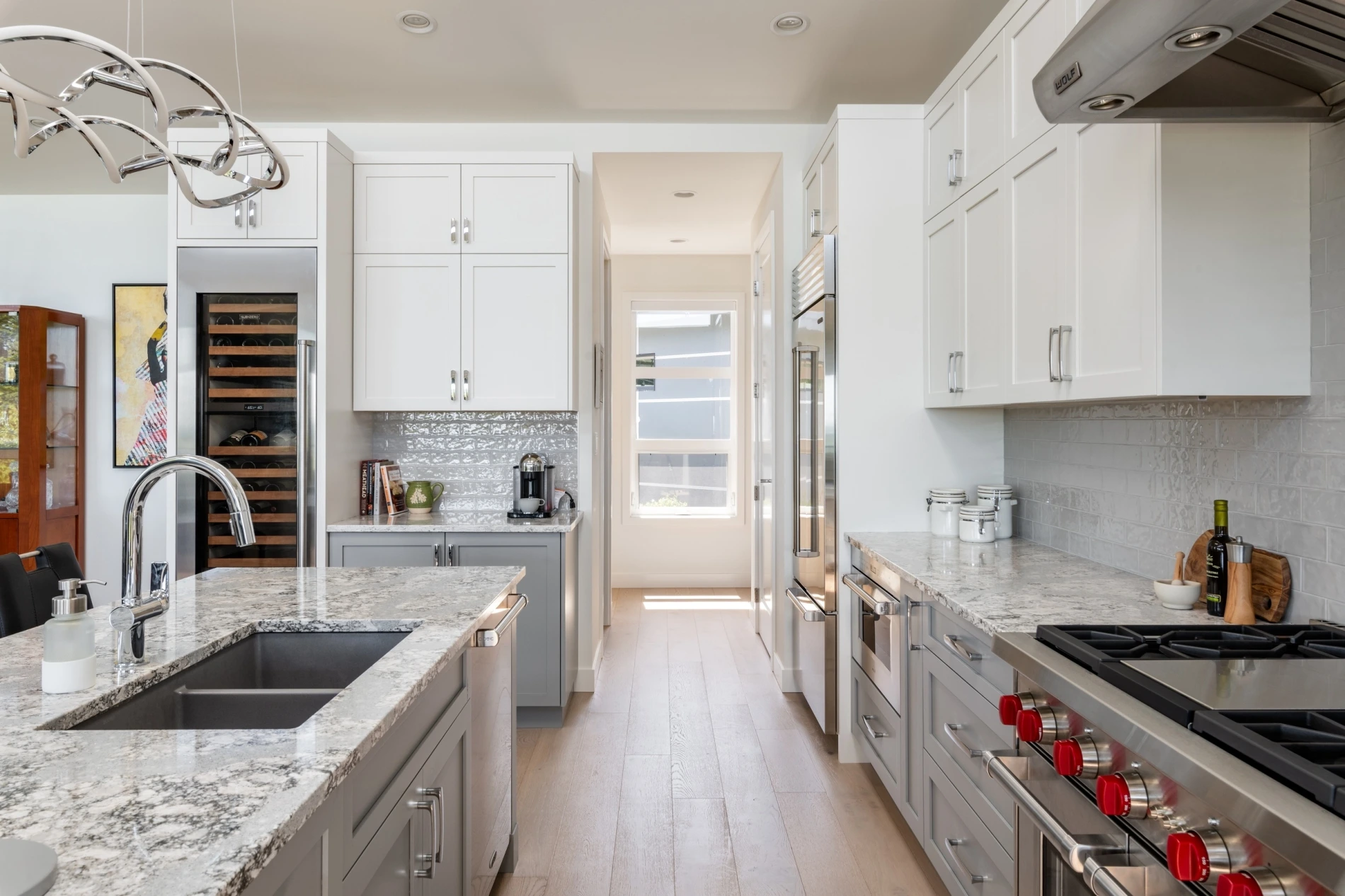 - Custom cabinetry throughout.